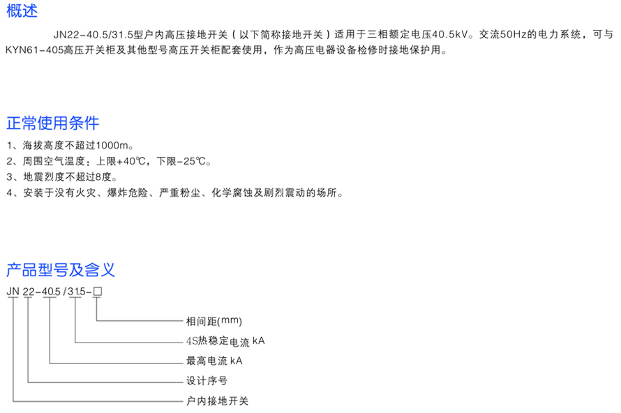 JN22-40.5/31.5戶內高壓接地開關
