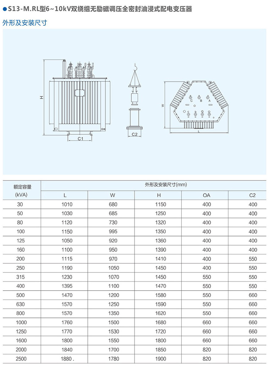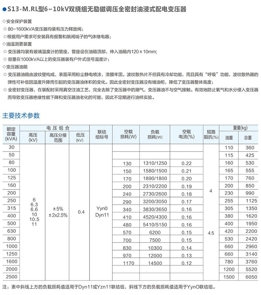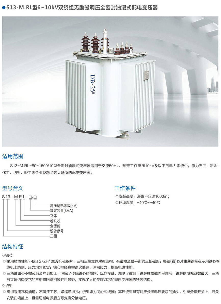 S13-MRL 6~10kV雙繞組無勵磁油浸式變電器